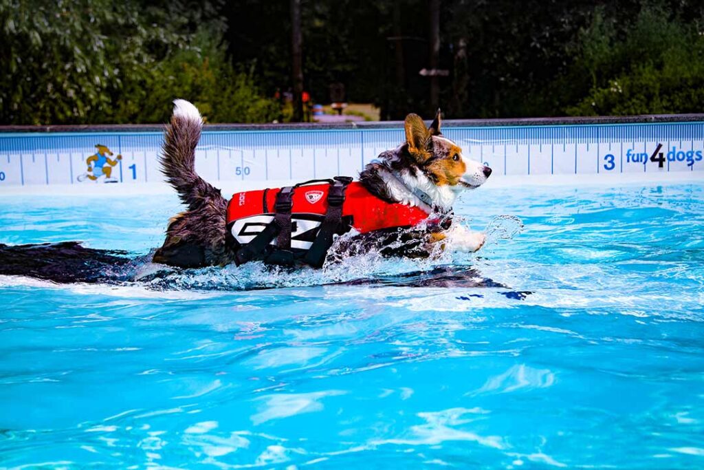 Hvis din hund ikke naturligt holder bagparten oppe i vandoverfladen, eller virker usikker og padler hektisk, anbefaler vi brug af svømmevest.