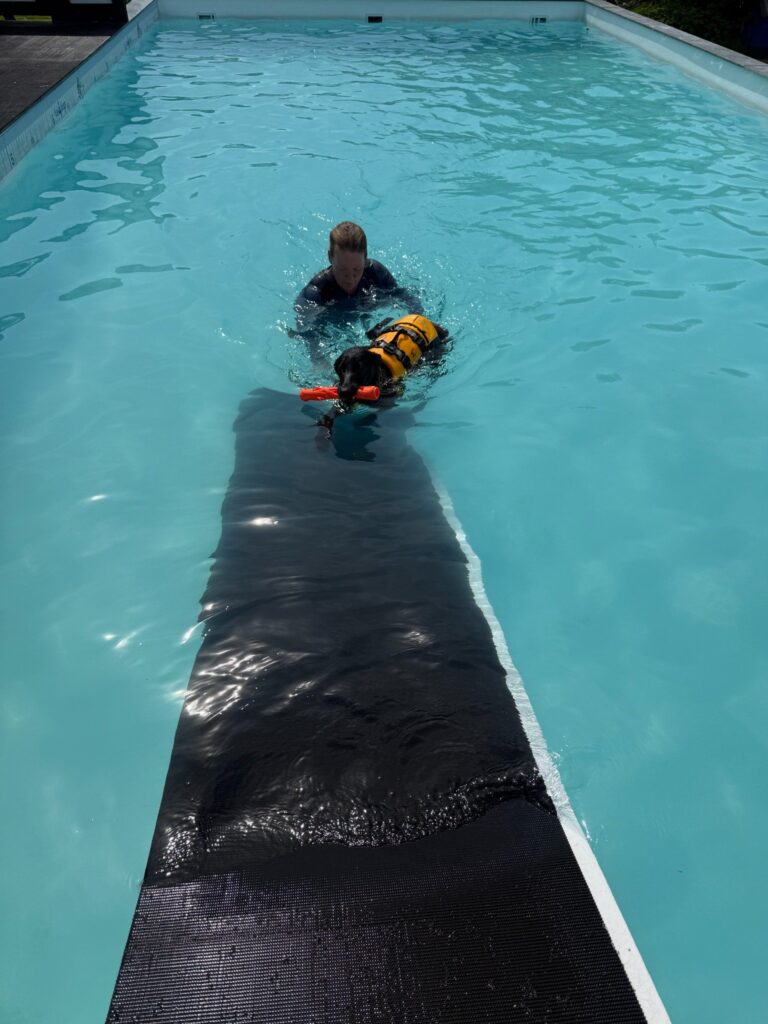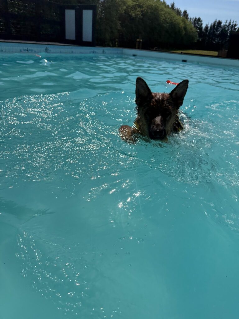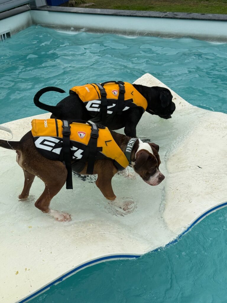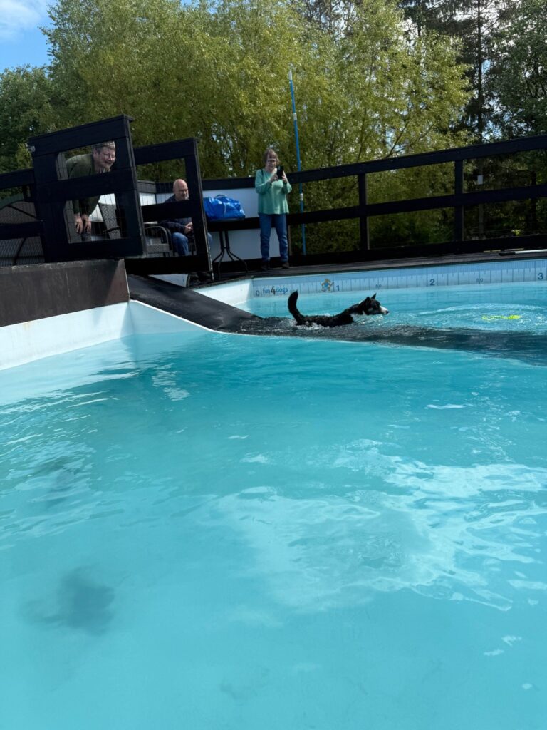 Bassinet rummer 100.000 liter klorvand og er designet til sikker leg og træning. Du må gerne gå med i vandet for at støtte din hund.